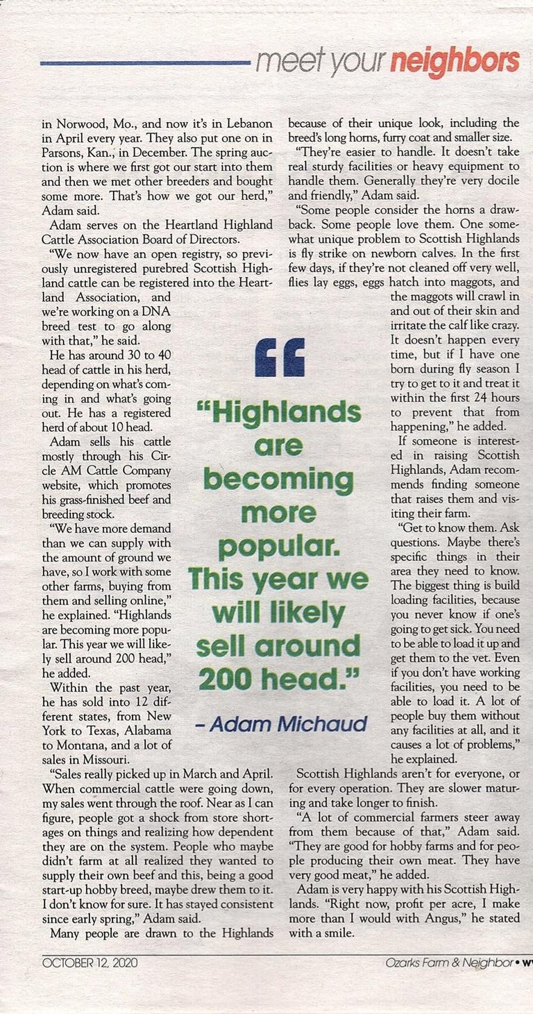 In October 2020, we were thankful to have been featured in the Ozarks Farm and Neighbor!