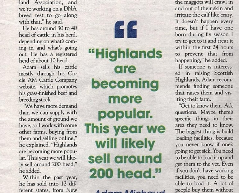 At Circle AM Cattle Company, we specialize in breeding exceptional Scottish Highland cattle in Elkland, MO, dedicated to quality and excellence in every aspect of our breeding program.